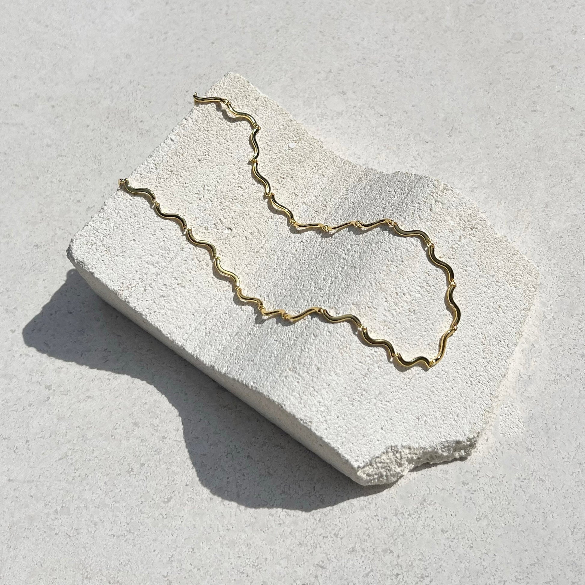 The limited edition Del Mar Necklace is created with intricate curved pieces hand linked together to form a fluid and playful necklace evoking seaside vacations and summer fun. Sure to compliment any outfit and receive compliments, this piece is a great gift for yourself or someone special.