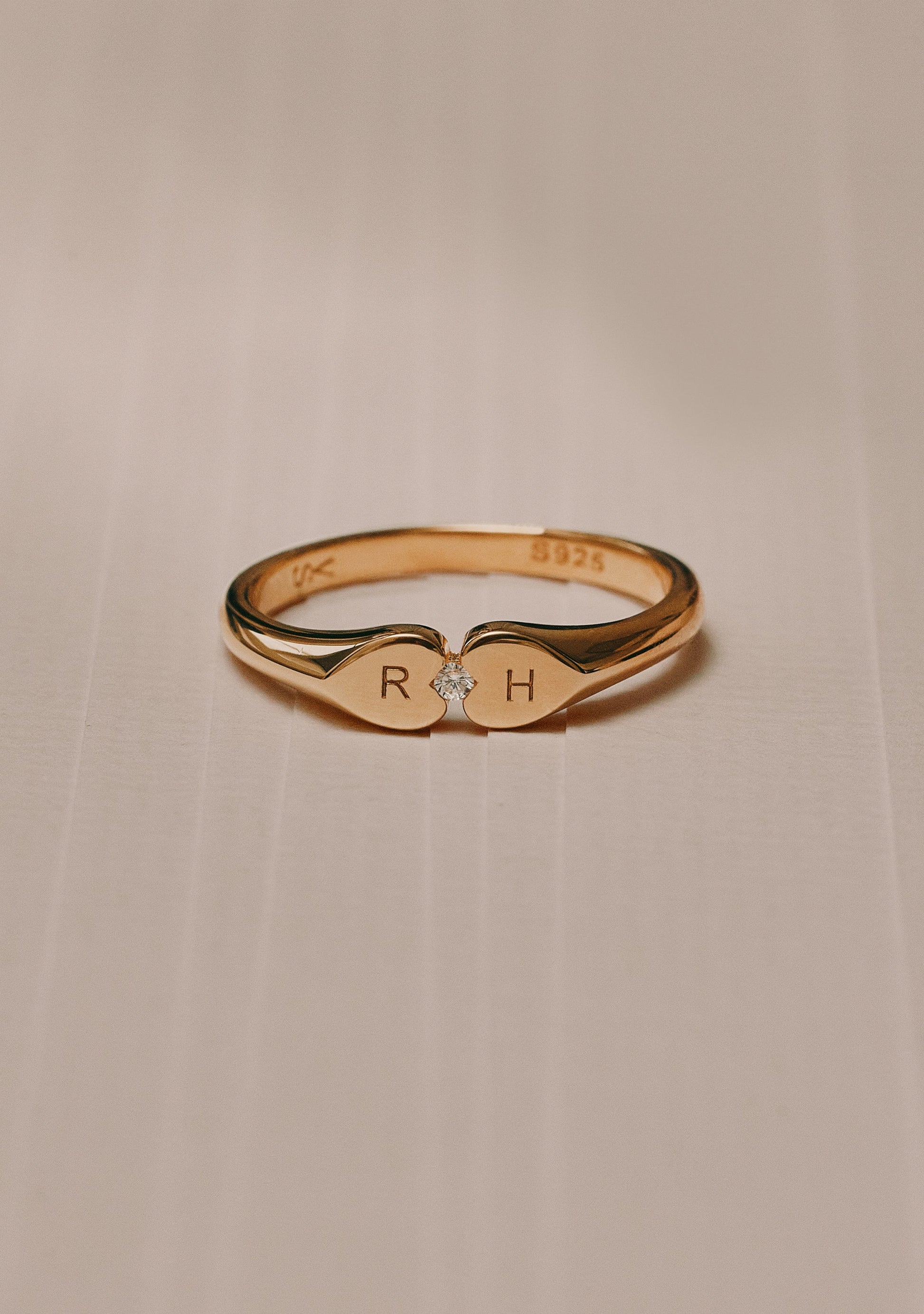 The Heart Connection Ring features two polished hearts joined by a twinkling white topaz stone, creating the perfect feminine update on the traditional Signet Ring design.
