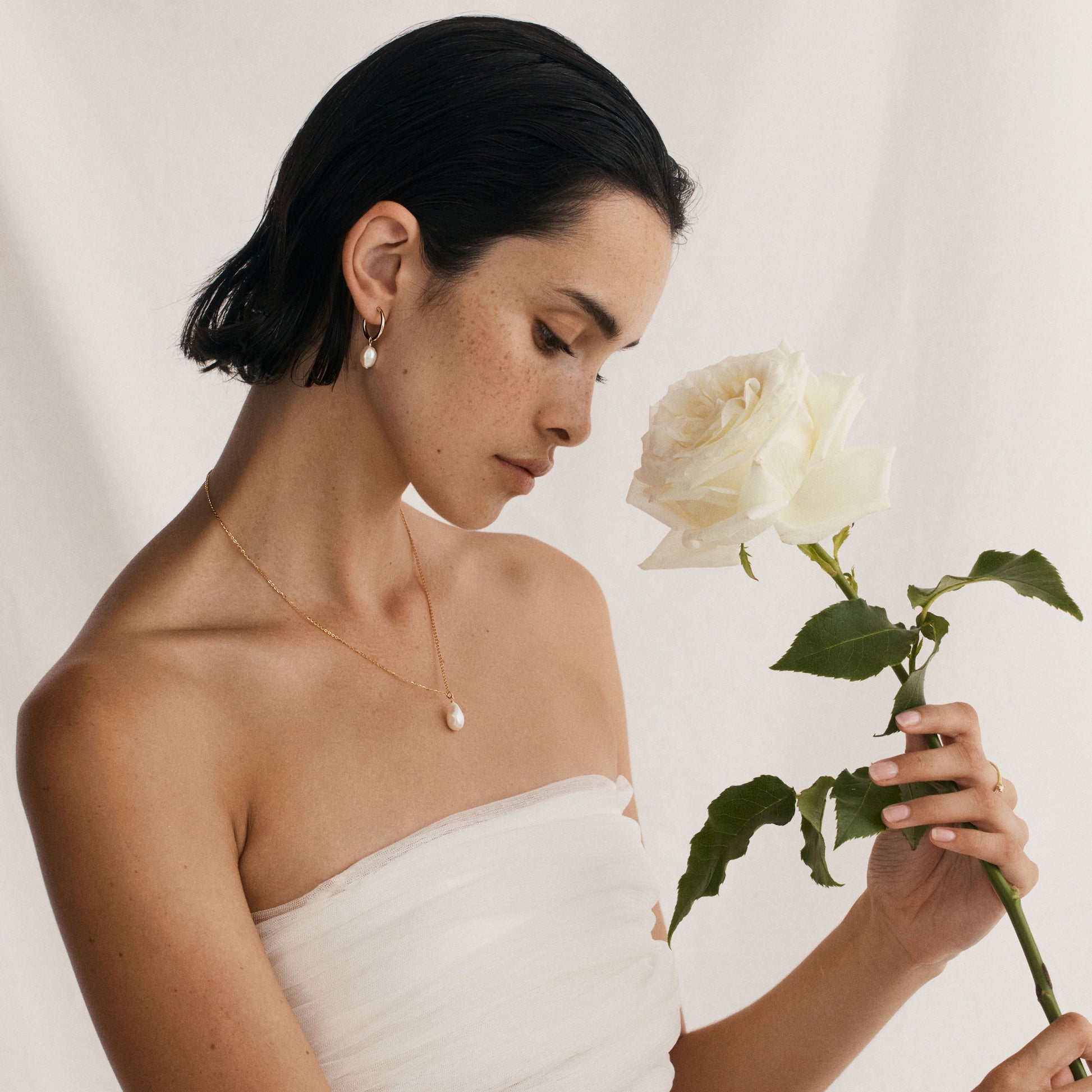 A classic pearl pendant necklace is always in style. Our elegant Keshi Pearl Necklace features a single teardrop shaped freshwater pearl suspended from a fine glistening chain.