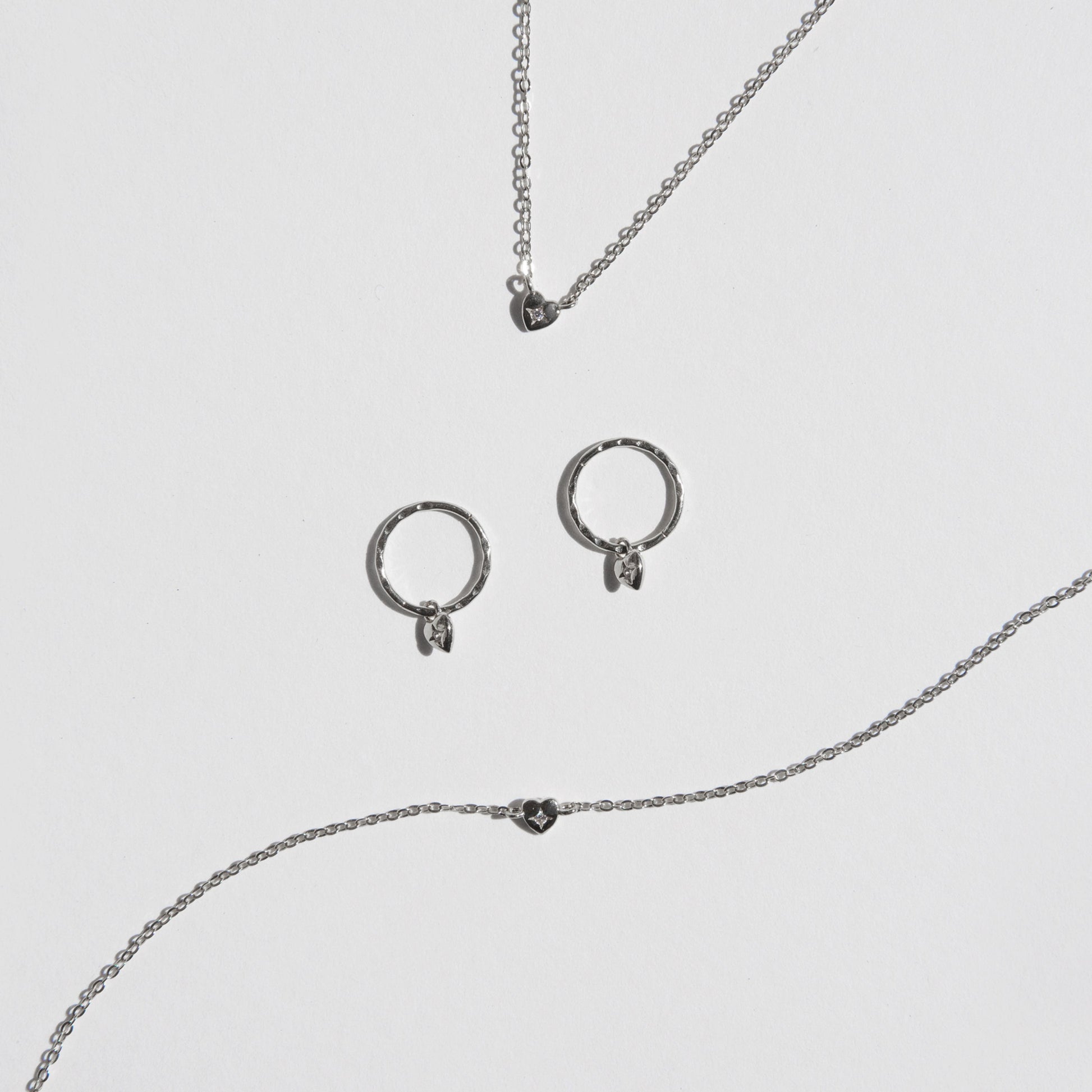 The Mini Heart Necklace features a dainty heart shaped pendant embellished with a single stone, suspended on a fine chain. Inspired by the E. E. Cummings poem, ‘I Carry Your Heart with Me’, this meaningful piece is perfect for every day adornment or a cherished gift.