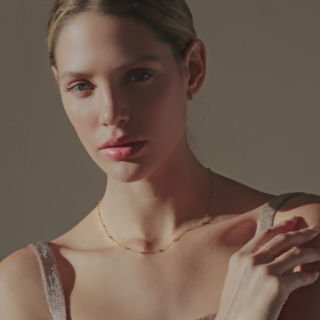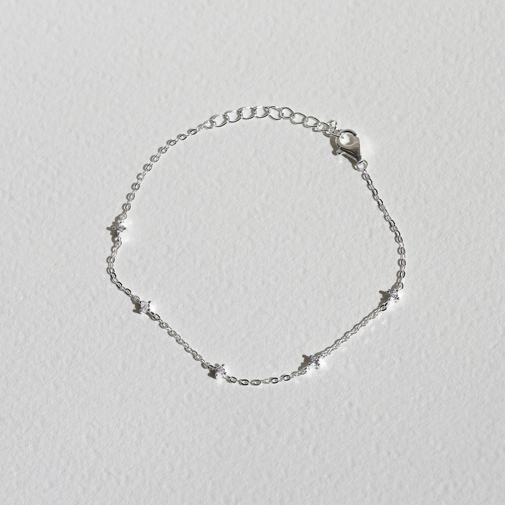 With the subtle sparkle of five petite stones suspended on a fine chain, the Starlight Bracelet captures the enchanting twinkle of first stars in the evening sky. Pair with the Starlight Ring and Necklace for a curated look, or wear alone for dainty adornment. A timeless gift for someone special or to treat yourself.