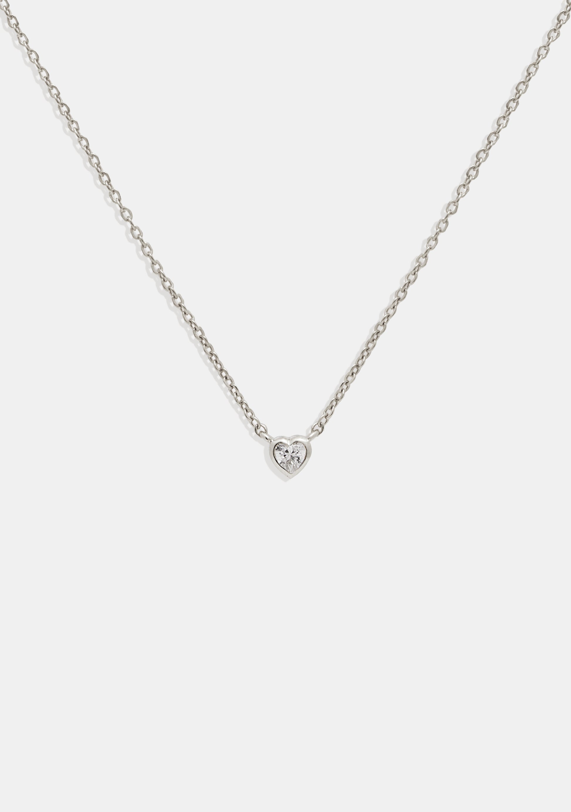 The True Love Necklace features a dainty heart-shaped cubic zirconia stone enclosed in a bezel setting, suspended on a fine chain.
